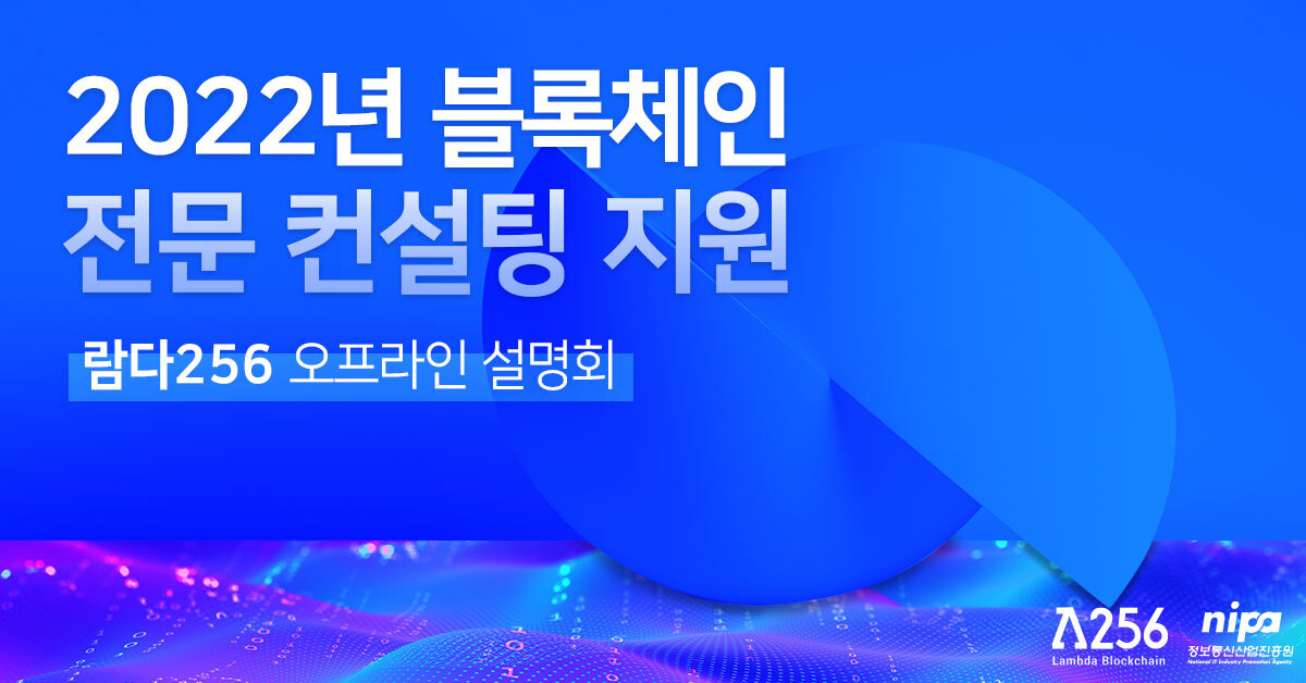 2022년 블록체인 전문 컨설팅지원 참여기업 모집 람다256이 과학기술정보통신부와 정보통신산업진흥원(NIPA)의 ‘2022년 블록체인 전문 컨설팅지원’ 사업자에 선정, 올해 이 사업에 함께 할 지원대상기업을 모집하고 있습니다!